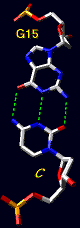 The exocyclic N2 amino group of G15 is the H-bond donor to N3 of
