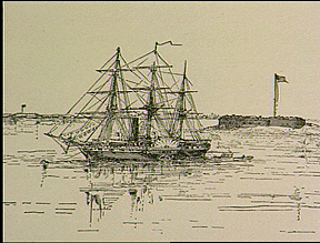 The Powhatan was a side-wheel steamer of 2,415 tons. It had been built at the Norfolk Navy Yard in 1853 at a cost of $785,000. With a maximum speed of 11 knots an hour, it cruised at an average of 8 knots. It carried an array of guns, including four heavy 12-pounders.